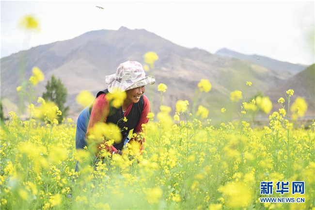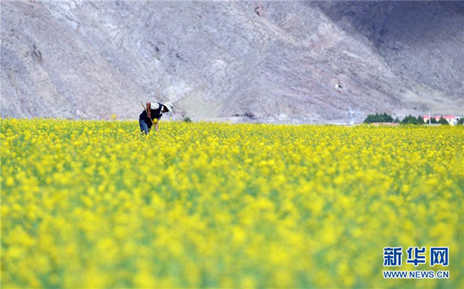 7月2日,拉薩市堆龍德慶區(qū)朗巴鄉(xiāng)村民玉珍在打理油菜花田。近日,西藏各地的油菜花盛開(kāi),呈現(xiàn)出生機(jī)勃勃的夏日美景。新華社記者晉美多吉攝