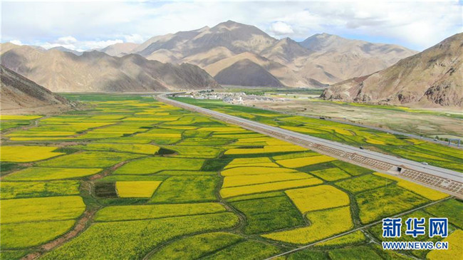 7月2日在拉薩市堆龍德慶區(qū)德慶鄉(xiāng)拍攝的油菜花田。近日,西藏各地的油菜花盛開(kāi),呈現(xiàn)出生機(jī)勃勃的夏日美景。新華社記者李鑫攝