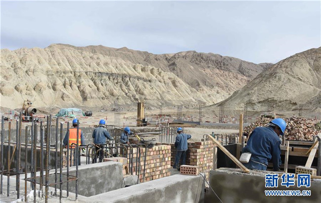 工人在搭建馬爾洋鄉(xiāng)輸電工程的變電站(9月7日攝)。 新華社記者 杜剛 攝