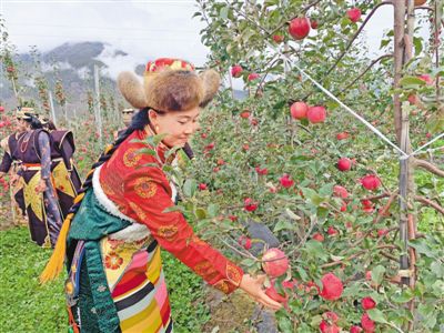 在四川省農科院的專家?guī)头鱿?,林巴村建立起了一座現(xiàn)代蘋果種植標準化示范園,如今果園里的蘋果已經掛果成熟。