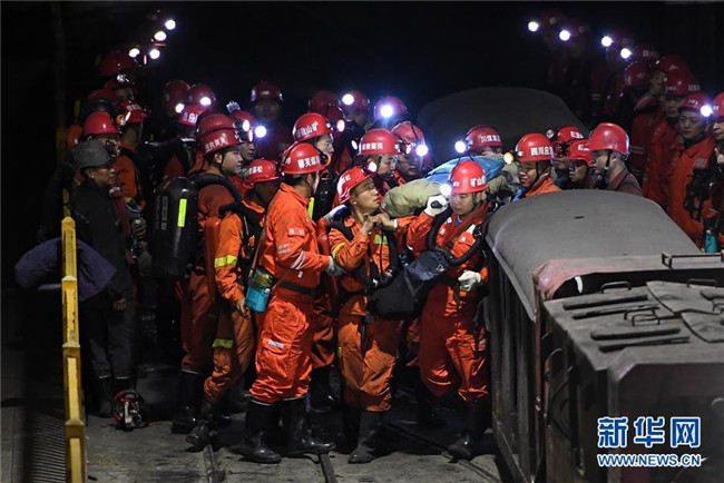 井下水位逐漸下降。18日3時,一名礦工涉水走出被困巷道,與井下救援隊伍會合,并報告剩余12人確認(rèn)安全。5時55分,首批2名被困人員從地下300多米深處被救出洞口。