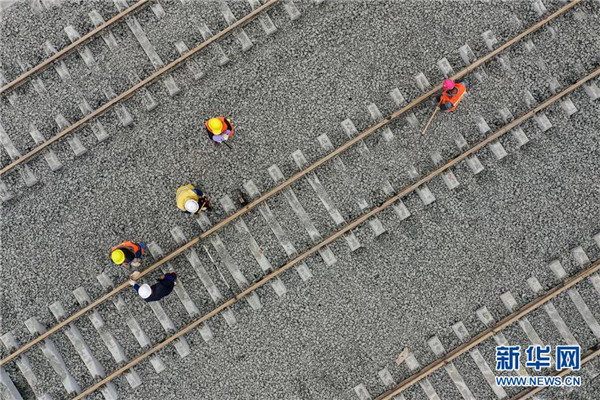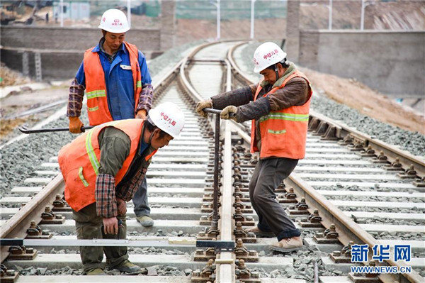 12月17日,中鐵八局建設者在改貌鐵路口岸施工。由中鐵八局承建的貴州省首個鐵路口岸——貴陽改貌鐵路口岸即將全面進入竣工驗收階段。據(jù)悉,貴陽改貌鐵路口岸為一級開放口岸,建成投運后將成為中歐班列的場站,年貨運吞吐量將達120萬噸,將進一步促進貴州省對接“一帶一路”和“國際陸海貿(mào)易新通道”,為貴州建設內陸開放型經(jīng)濟試驗區(qū)提供有力支撐。新華社記者劉續(xù)攝