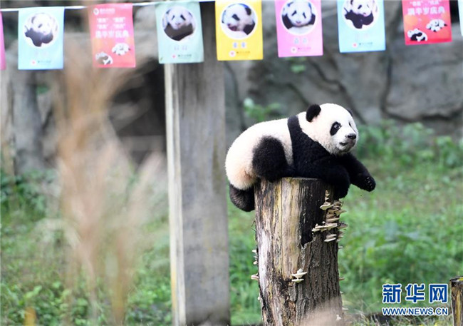 12月22日,重慶動物園1只半歲的大熊貓在戶外活動。當(dāng)日,重慶動物園為4只大熊貓寶寶“雙雙”“重重”“喜喜”“慶慶”舉行半歲生日慶祝活動。4只半歲大熊貓在飼養(yǎng)員的照料下,在熊貓館運(yùn)動場內(nèi)玩耍、嬉戲,與市民游客一同過冬至。新華社記者唐奕攝