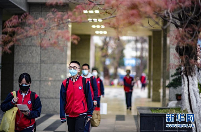 3月23日,昆明市第一中學(xué)高三年級(jí)學(xué)生進(jìn)入校園準(zhǔn)備上課。新華社記者 江文耀 攝