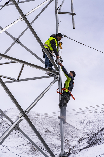 在距離當雄縣城約80公里左右的烏瑪塘鄉(xiāng)巴嘎村,中國電信集團拉薩分公司當雄電信局的技術(shù)人員在調(diào)試基站設備(3月6日攝)。新華社記者 孫非/攝