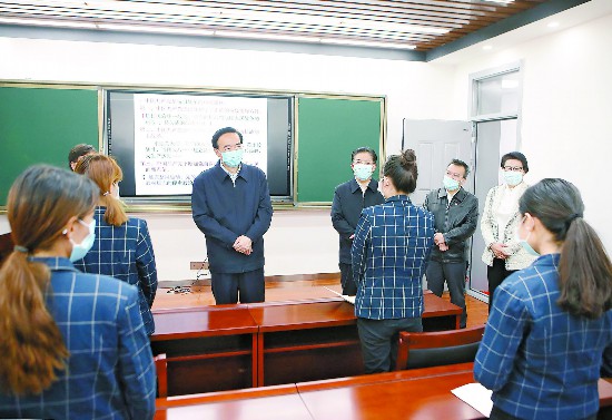 陳全國在調研中指出,要認真貫徹落實習近平總書記重要講話和重要指示精神,增強“四個意識”、堅定“四個自信”、做到“兩個維護”,以對學生、家長、社會高度負責的態(tài)度,堅決把疫情防控和開學復課各項工作抓細抓實抓好,確保安全有序、萬無一失。要強化防控措施,嚴格落實身份核驗、體溫監(jiān)測、佩戴口罩等措施,加強教室、宿舍、餐廳、圖書館等場所通風消毒和衛(wèi)生清潔,堅決防止發(fā)生輸入性、聚集性疫情。要強化校園管理,分區(qū)分片劃小管理網格,精細安排學生錯時上課、合理住宿、分散就餐,科學安排課余時間,避免扎堆聚集;加強宣傳教育和家校溝通,引導學生主動服從管理、增強防范意識。要強化物資保障,充足供應口罩、測溫槍、消毒水等防疫消殺物品,有效保障防控需要。要強化教育教學,改進完善教育教學方案,創(chuàng)新方式、科學安排、優(yōu)化內容、加強指導,確保教學質量不打折扣;統(tǒng)籌做好畢業(yè)年級學生論文答辯、學位申請、就業(yè)創(chuàng)業(yè)等工作,努力做好就業(yè)服務指導工作。要強化應急處置,完善工作預案,常態(tài)化值班值守,全面開展校園安全隱患排查,加強校園食品、消防、實驗室等重點環(huán)節(jié)安全管理,切實守護好校園安全。要強化責任落實,各地和各高校黨委要認真落實屬地責任和主體責任,守土有責、守土擔責、守土負責,黨委書記要嚴格落實第一責任人責任,親力親為親自抓;教育行政部門要統(tǒng)籌謀劃、加強指導;相關部門要各司其職、協(xié)調聯動;高校黨員干部要真抓實干、落實落細,切實凝聚起統(tǒng)籌做好開學復課和疫情防控的強大合力。