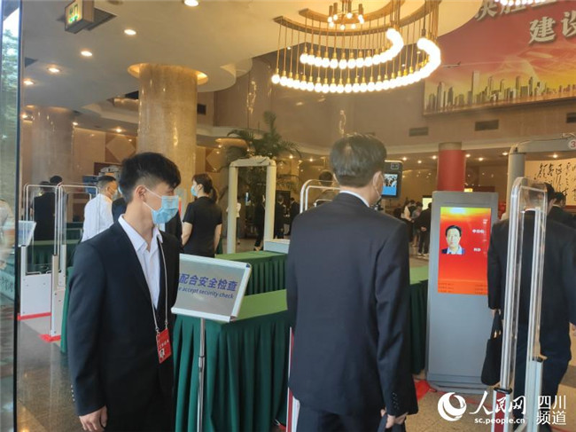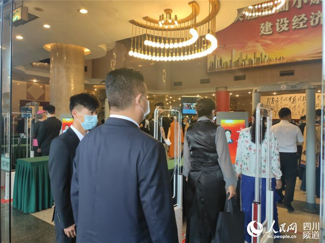 進(jìn)入會(huì)場(chǎng)前,委員們?cè)诎矙z通道接受紅外線測(cè)溫儀體溫檢測(cè)。郭瑩攝