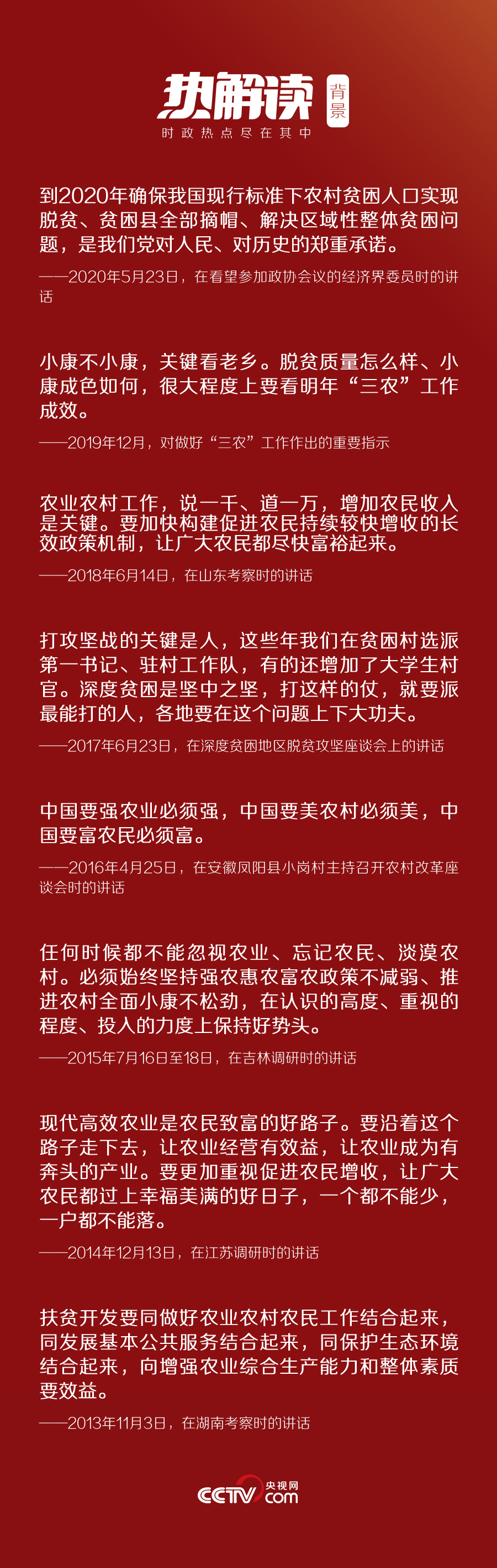 3月6日,在黨的十八大以來脫貧攻堅(jiān)方面最大規(guī)模的會(huì)議上,習(xí)近平對(duì)脫貧攻堅(jiān)工作再作部署:“這是一場(chǎng)硬仗,越到最后越要緊繃這根弦,不能停頓、不能大意、不能放松。各省區(qū)市都層層簽了軍令狀,承諾了就要兌現(xiàn)。”