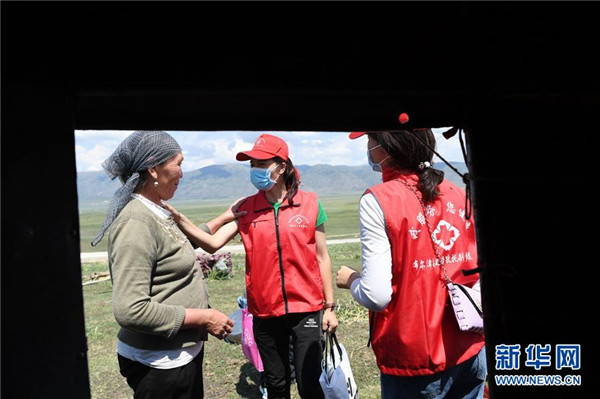 6月20日,新疆阿勒泰地區(qū)布爾津縣也格孜托別鄉(xiāng)克孜勒托蓋村村醫(yī)來到布爾津縣黑流灘草原給牧民巴合提古麗·塔拉甫汗檢查身體。圍繞實現(xiàn)人人享有基本醫(yī)療衛(wèi)生服務目標,2016年起,新疆布爾津縣開展家庭醫(yī)生簽約服務工作。該縣組建家庭醫(yī)生簽約團隊65個,團隊醫(yī)務人員233名,通過手機APP、基本公衛(wèi)系統(tǒng)與全縣建檔立卡貧困戶進行電子化簽約,提升村醫(yī)隨訪的工作效率和質(zhì)量。截至目前,已完成簽約42936人,履約40043人。新華社記者沙達提攝