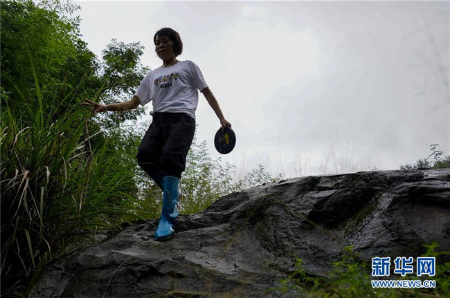 7月1日,在重慶永川區(qū),地災(zāi)監(jiān)測員侯芳走在崎嶇的山道上,進行巡查監(jiān)測工作。新華社記者 劉潺 攝
