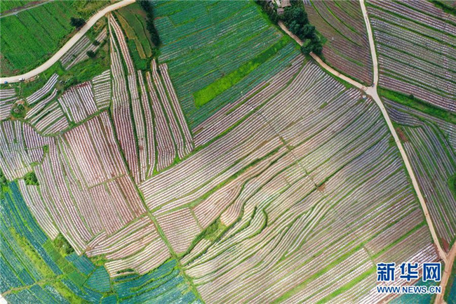 7月14日在貴州省畢節(jié)市威寧縣草海鎮(zhèn)中海村拍攝的蔬菜基地(無人機照片)。新華社發(fā)(羅大富 攝)