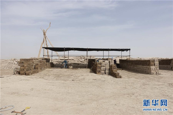這是搶險加固中的樓蘭古城三間房遺址(7月27日攝,手機照片)。新華社發(fā)(中鐵西北科學(xué)研究院有限公司提供)