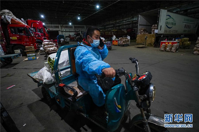凌晨的新疆九鼎農(nóng)產(chǎn)品批發(fā)交易市場異常忙碌。各式蔬菜在這里匯集,大批菜商搶抓時間采購,他們采用“螞蟻搬家”的方式要將蔬菜趕在9點鐘之前放在直銷點的貨柜上,方便居民選購。陳金奇就是其中之一。 陳金奇負責的烏魯木齊市沙依巴克區(qū)揚子江街道青松苑社區(qū)蔬菜直銷點輻射三個小區(qū)和一家醫(yī)院。“從這次烏魯木齊發(fā)生疫情以來,我們一直沒有關(guān)門,開足馬力滿足周邊居民的生活需求。”陳金奇說。 凌晨四點是陳金奇一天忙碌的開始。這一刻,他開著面包車驅(qū)車20分鐘前往烏魯木齊最大的一級農(nóng)副產(chǎn)品批發(fā)交易市場——新疆九鼎農(nóng)產(chǎn)品批發(fā)交易市場采購。 經(jīng)過嚴格的防疫處理后,陳金奇進入市場。為提高效率,他放下面包車換駕電動三輪車穿行在這座龐大的市場里。“黃瓜多少錢?西紅柿多少錢?小白菜多少錢……”在新鮮、價格和速度中,陳金奇總能找到最好的結(jié)合點。 經(jīng)歷了兩個半小時,總重超過一噸的新鮮蔬菜分四批采購完成裝入面包車里。“現(xiàn)在市場里各類蔬菜是比較豐富的,山東的生姜、五家渠的芹菜、河南的蒜苔等都能順利買到。”陳金奇介紹,現(xiàn)在最重要的是快速將這些鮮菜送到居民手中。 忙碌了近三個小時,這座城市的天際線慢慢顯露出來。陳金奇在回程的汽車上,黎明時分的金色陽光映照著他黝黑的臉龐。“做好自己的事情就足夠了,我就是要盡全力讓居民吃上新鮮蔬菜。” 一年只有年三十和初一才能休息的陳金奇知道,現(xiàn)在這座城市比任何時候都需要他。