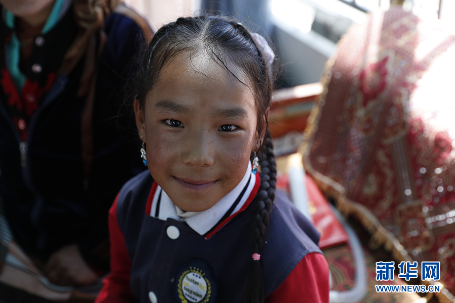 這是扎扎小學(xué)三年級(jí)學(xué)生白瑪。新華網(wǎng)記者焦鵬 攝