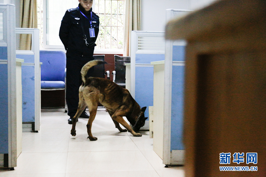 箱包搜爆項目中,警犬正在搜尋。新華網發(fā)
