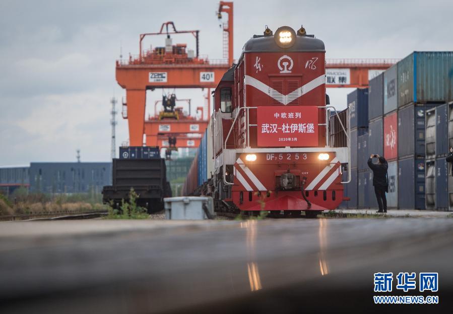 開往德國杜伊斯堡的中歐(武漢)班列從中鐵聯(lián)集武漢中心站駛出(2020年3月28日攝)。這是自疫情防控以來,從武漢開出的首趟中歐班列,標志著中歐班列(武漢)恢復(fù)常態(tài)化運營。新華社記者 肖藝九 攝