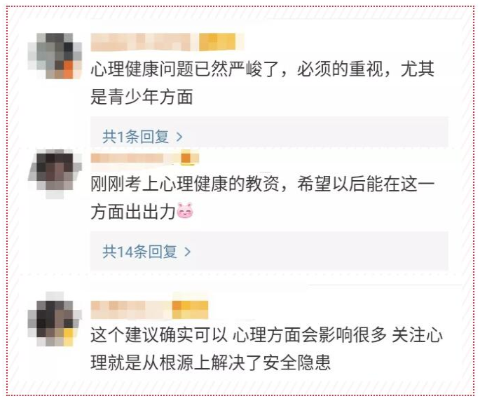 全國人大代表司富春建議,針對(duì)中小學(xué)校教師普及心理健康常識(shí),實(shí)施教師心理健康教育資格認(rèn)證制度,實(shí)行班主任和專、兼職心理健康教育教師持證上崗制度。加強(qiáng)對(duì)中小學(xué)生實(shí)施心理健康教育。