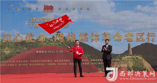 主會場活動結束后,陜西分會場“在這里讀懂初心使命——網絡媒體革命老區(qū)行”網絡主題采訪活動在延安寶塔山游客廣場正式啟動。趙剛在分會場啟動儀式上講話并向采訪團授旗。陜西省委網信辦主任鮑永能主持啟動儀式。中央網信辦網絡傳播局副局長邵波濤,陜西省委網信辦副主任王利參加啟動儀式。延安市委副書記、政法委書記嚴漢平在啟動儀式上致辭。媒體團代表中國新聞網負責人吳慶才作表態(tài)發(fā)言。