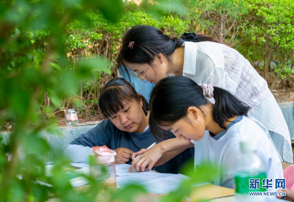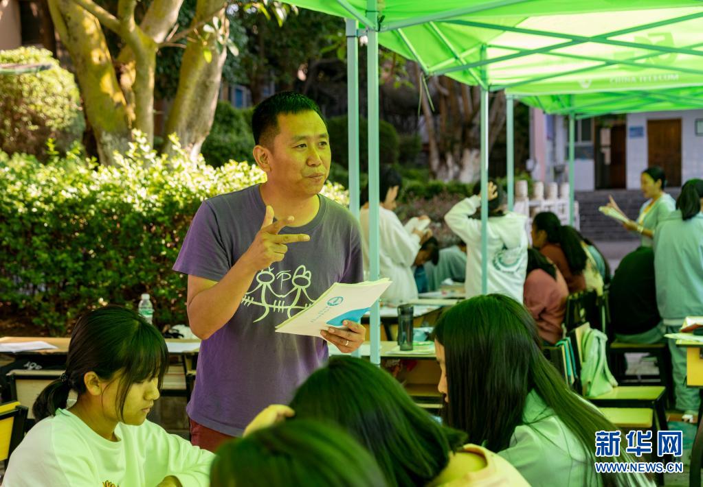 5月24日,漾濞一中老師(中)在輔導高三年級學生。新華社記者陳欣波攝