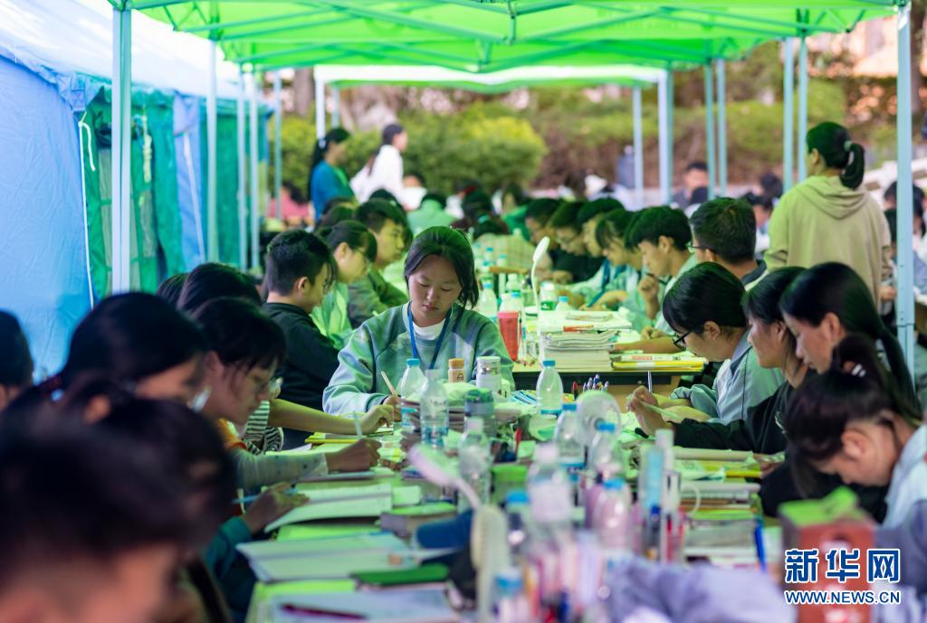5月24日,漾濞一中高三年級學生在帳篷下學習。新華社記者陳欣波攝