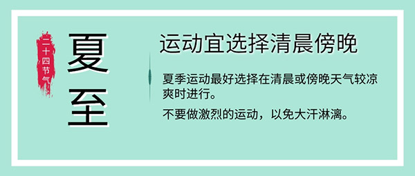 夏季運(yùn)動(dòng)時(shí)間宜在清晨或傍晚,此時(shí)天氣涼爽,可以采用健步走、慢跑、太極拳等運(yùn)動(dòng)緩和的項(xiàng)目進(jìn)行體育鍛煉,宜避開烈日熾熱之時(shí)且不宜做過分劇烈的活動(dòng),以免汗出太過,損傷陽(yáng)氣,耗傷陰氣,且運(yùn)動(dòng)后不可用冷水淋浴或沖頭。