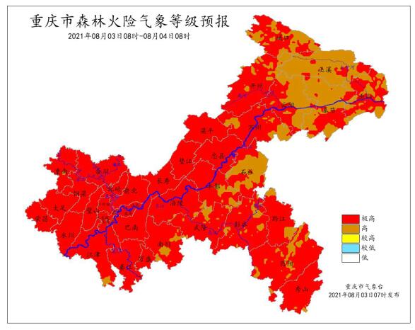 預計未來24小時,重慶市大部地區(qū)森林火險氣象條件等級極高,須嚴密防范,林區(qū)須加強火源管理。