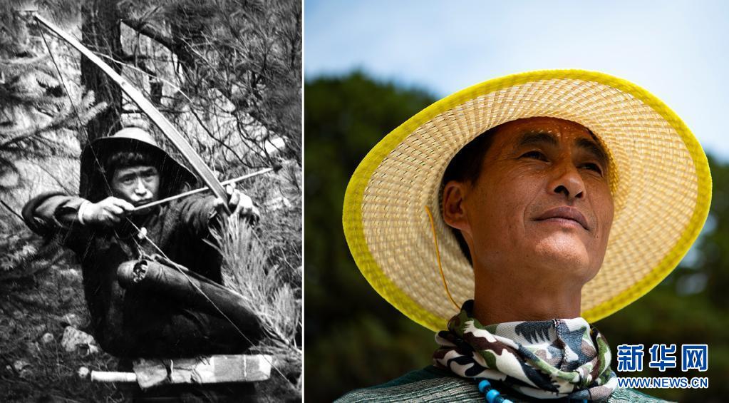 拼版照片: 左圖是20世紀(jì)50年代瓊林村的獵手達前(資料照片);右圖是2021年6月19日拍攝的林芝米林縣瓊林村村民達吉,結(jié)束打獵生涯,成為養(yǎng)殖戶和護林員(新華社記者晉美多吉攝)。新華社發(fā)