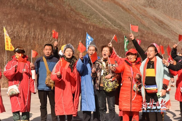 “我和我的祖國(guó),一刻也不能分割,無(wú)論我走到……”一輛行駛在景區(qū)的綠皮大巴車?yán)铮瑐鞒隽水惪谕暤暮铣?,只見游客們揮動(dòng)著手中的國(guó)旗,隨著旋律陶醉在歌聲中……