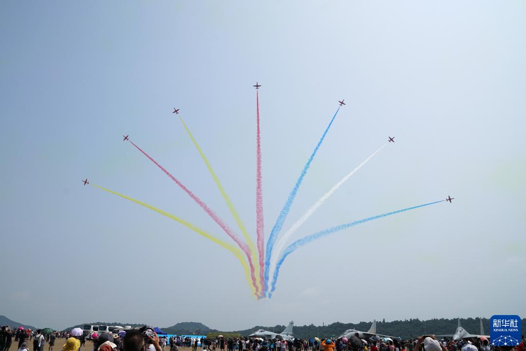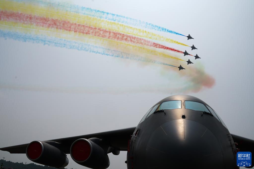 10月1日,中國(guó)空軍八一飛行表演隊(duì)在第十三屆中國(guó)國(guó)際航空航天博覽會(huì)上進(jìn)行飛行表演。新華社發(fā)(余紅春 攝)