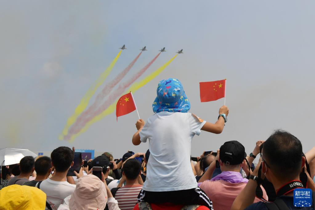 中國(guó)航展現(xiàn)場(chǎng),五星紅旗隨處可見(jiàn),成為全場(chǎng)最鮮艷的顏色。藍(lán)天之上,戰(zhàn)鷹向祖國(guó)報(bào)告:空軍官兵堅(jiān)決捍衛(wèi)國(guó)家主權(quán),堅(jiān)決捍衛(wèi)祖國(guó)統(tǒng)一,堅(jiān)定維護(hù)世界和平?! ⌒氯A社記者劉濟(jì)美、高玉嬌、劉一諾