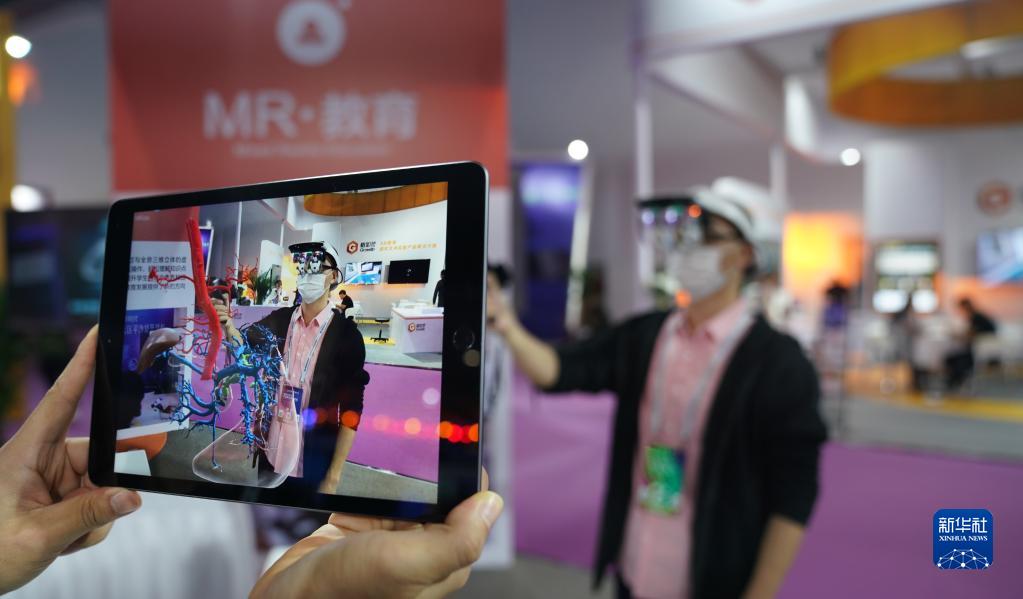 2020年10月19日,2020世界VR產(chǎn)業(yè)大會云峰會在江西省南昌市開幕,這是觀眾在大會VR/AR產(chǎn)品和應(yīng)用展覽會上體驗“MR交互系統(tǒng)”在醫(yī)務(wù)教學(xué)上的應(yīng)用。新華社記者 胡晨歡 攝