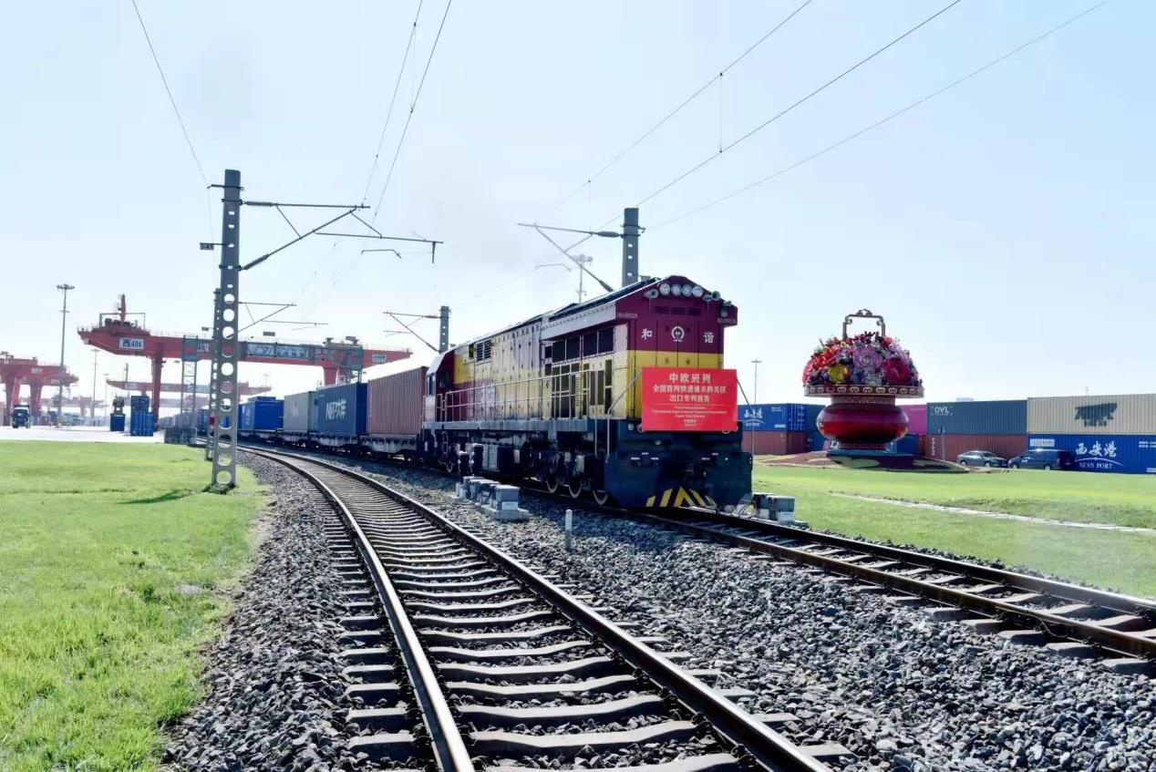 從西安國(guó)際港務(wù)區(qū)駛出的中歐班列(央廣網(wǎng)發(fā) 西安國(guó)際港務(wù)區(qū)供圖)