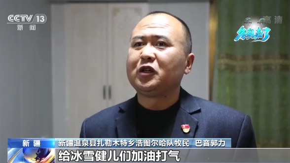 新疆溫泉縣扎勒木特鄉(xiāng)浩圖爾哈隊牧民 巴音郭力:我們特別激動,就想用跑馬送行的形式給冰雪健兒們加油打氣,希望他們能為國爭光,能把我們的心情帶到奧運賽場上。