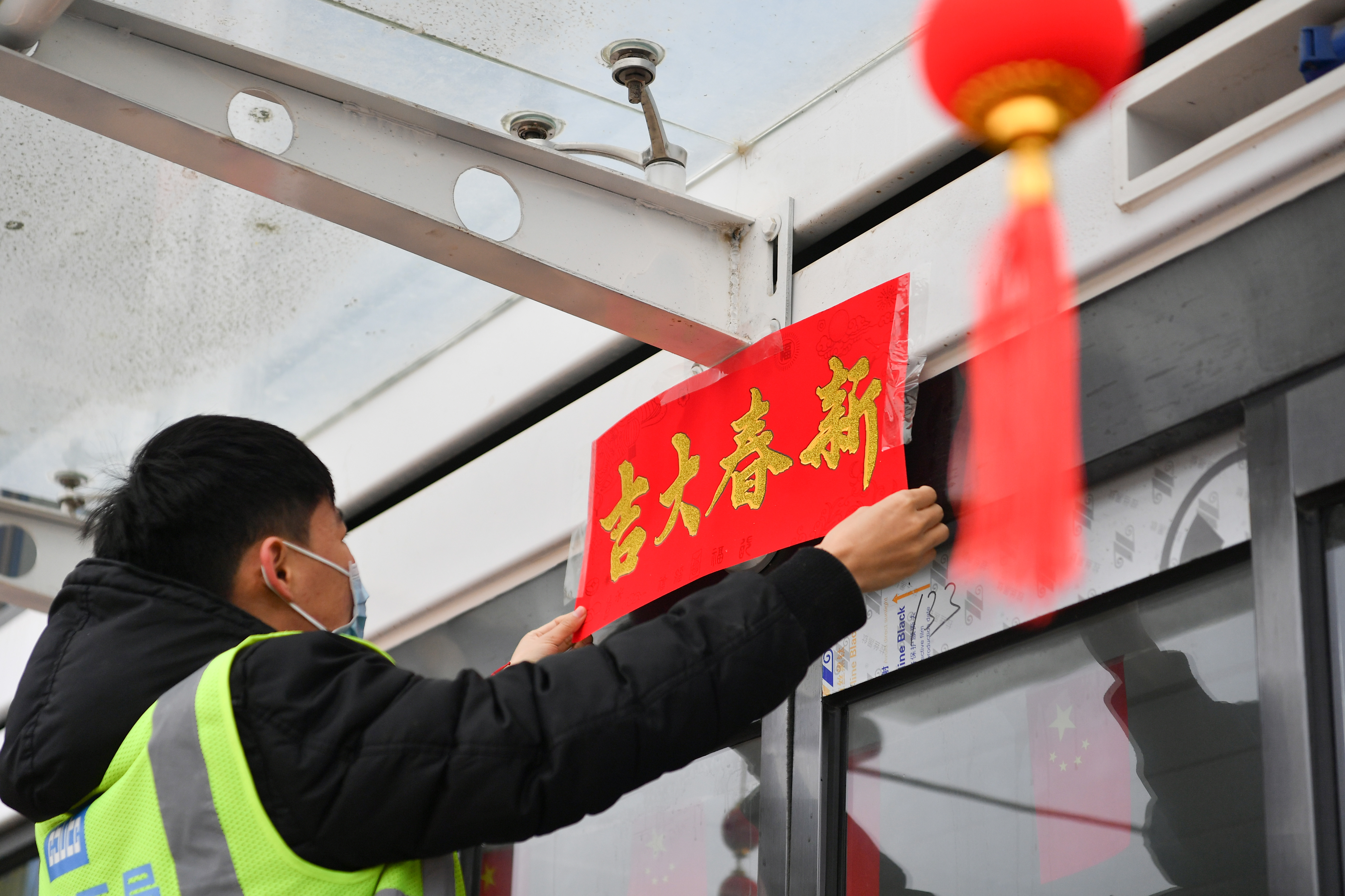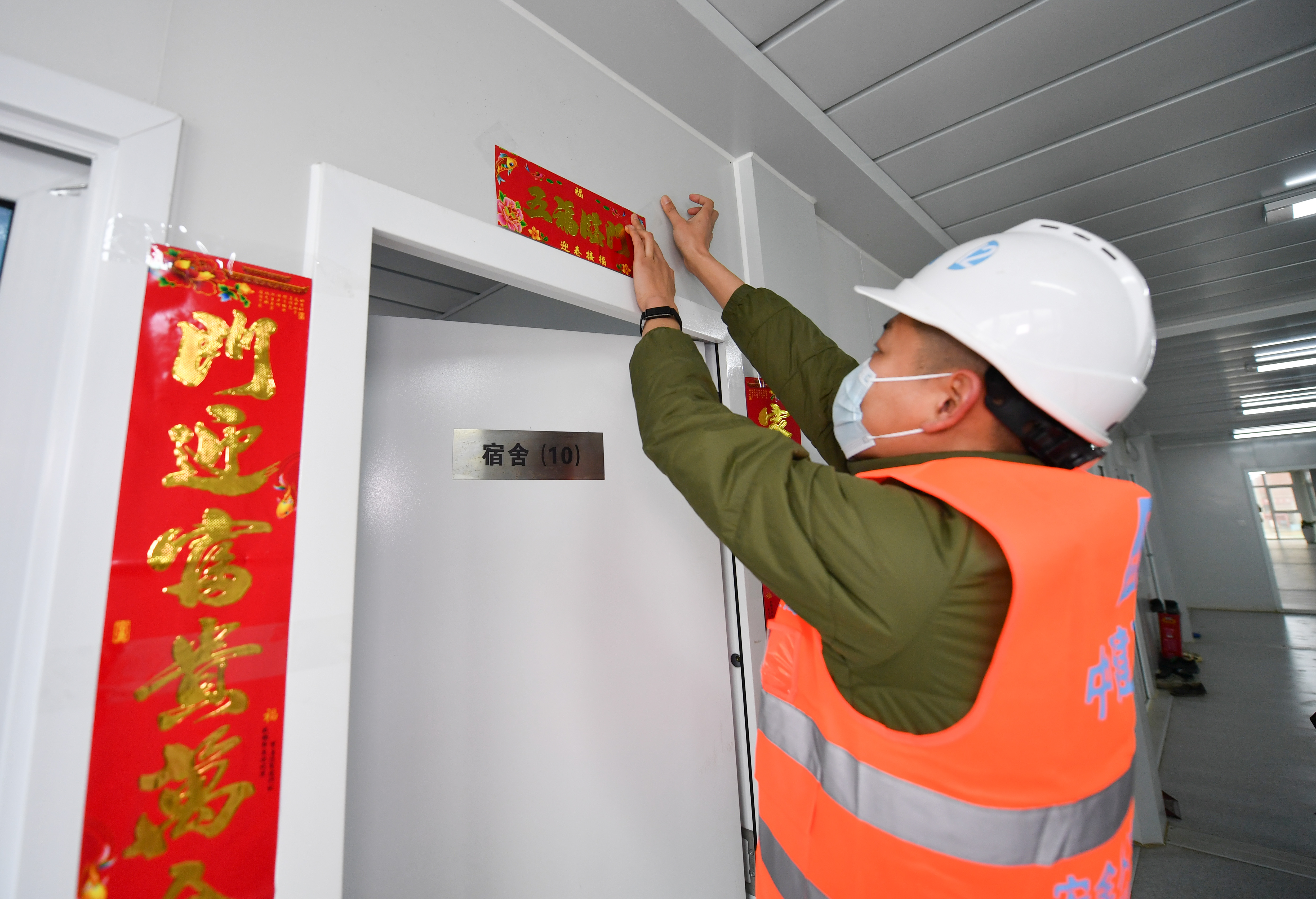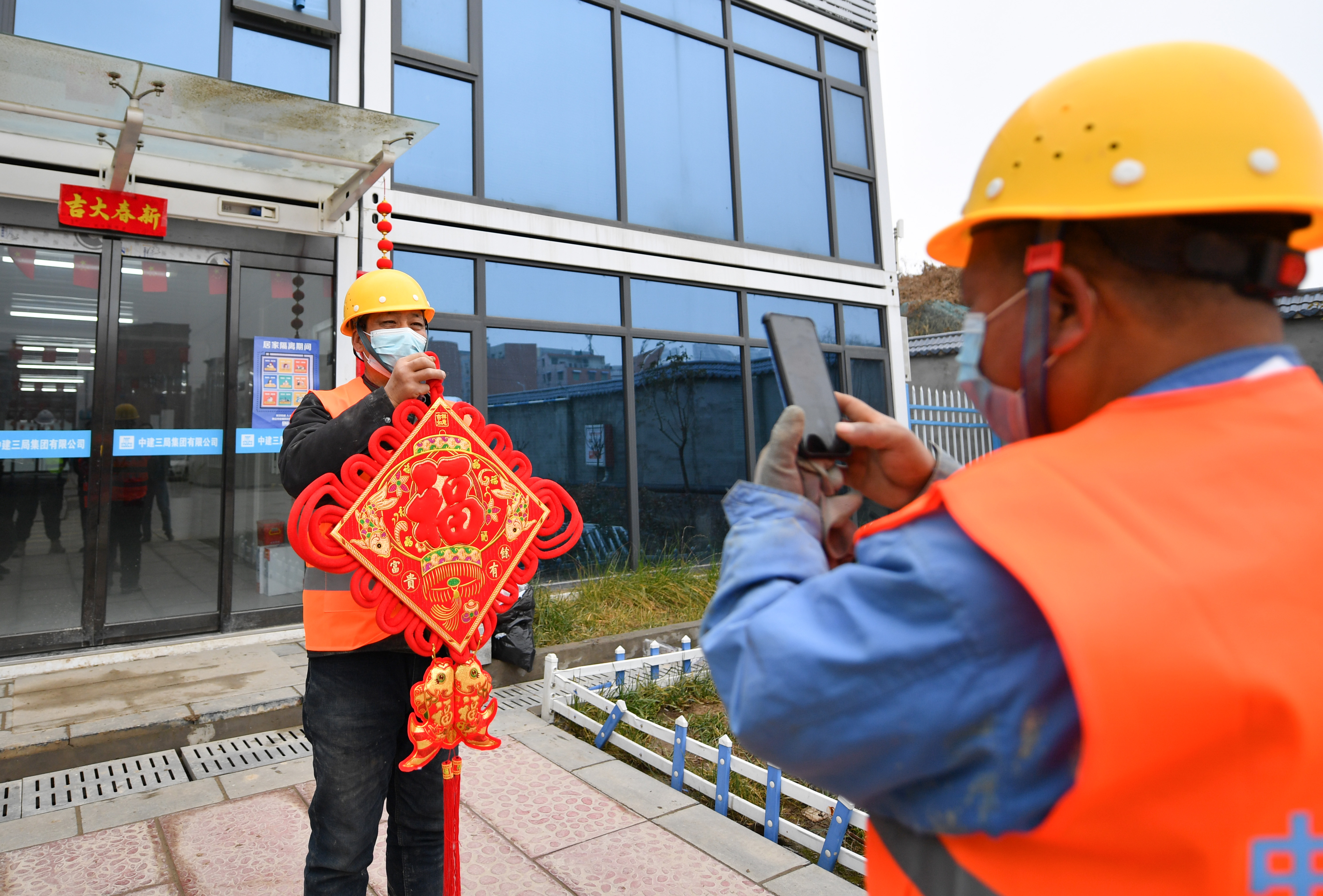 當(dāng)日是農(nóng)歷臘月二十八,在陜西省西安市第一實(shí)驗(yàn)學(xué)校建設(shè)項(xiàng)目工地,留守工地的建設(shè)者用貼春聯(lián)、掛燈籠等方式,迎接佳節(jié)的到來。