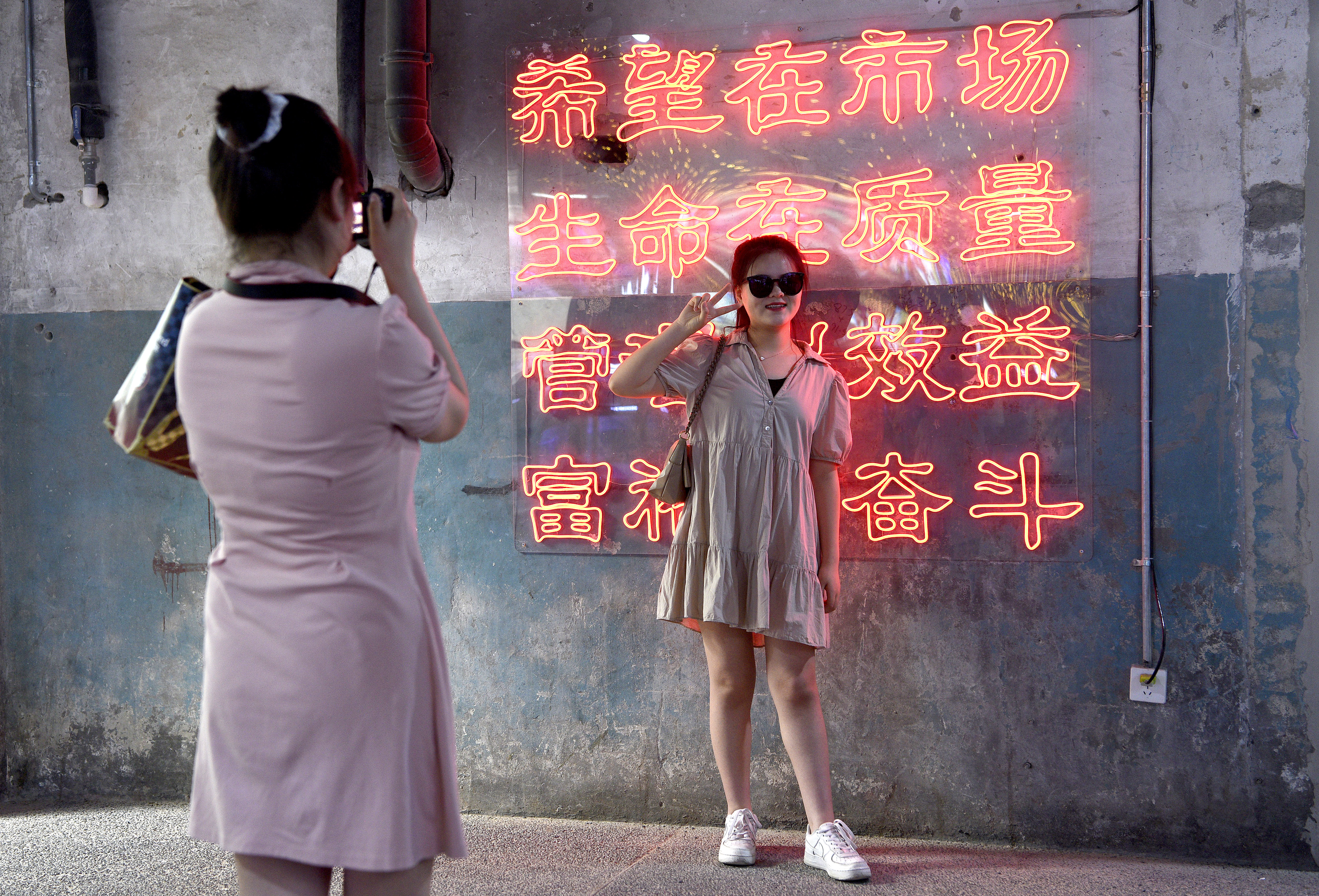 5月29日,市民在西安際華3511文創(chuàng)科技園內(nèi)拍照。 新華社記者 劉瀟 攝