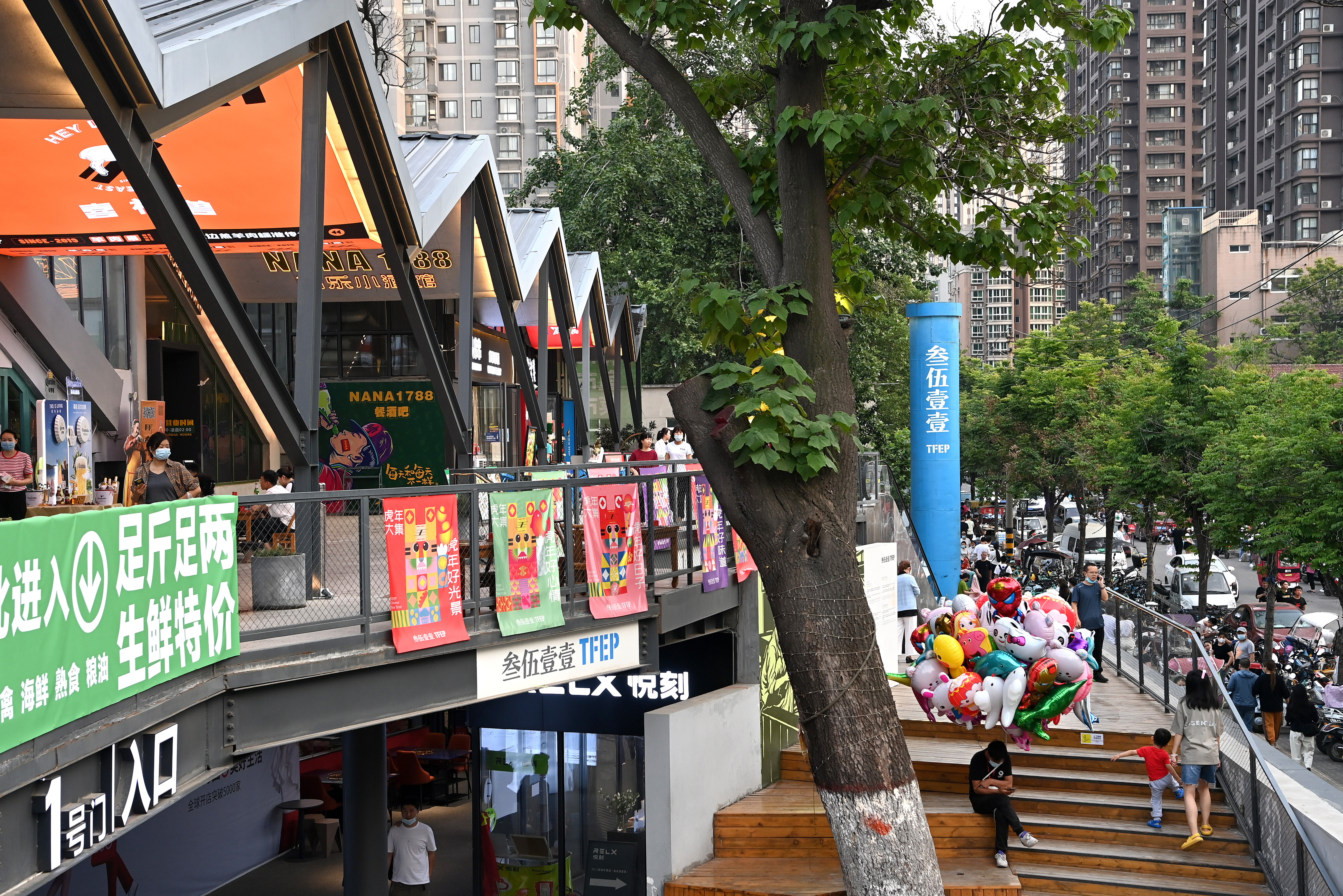 市民在西安際華3511文創(chuàng)科技園內(nèi)(5月20日攝)。 新華社記者 劉瀟 攝