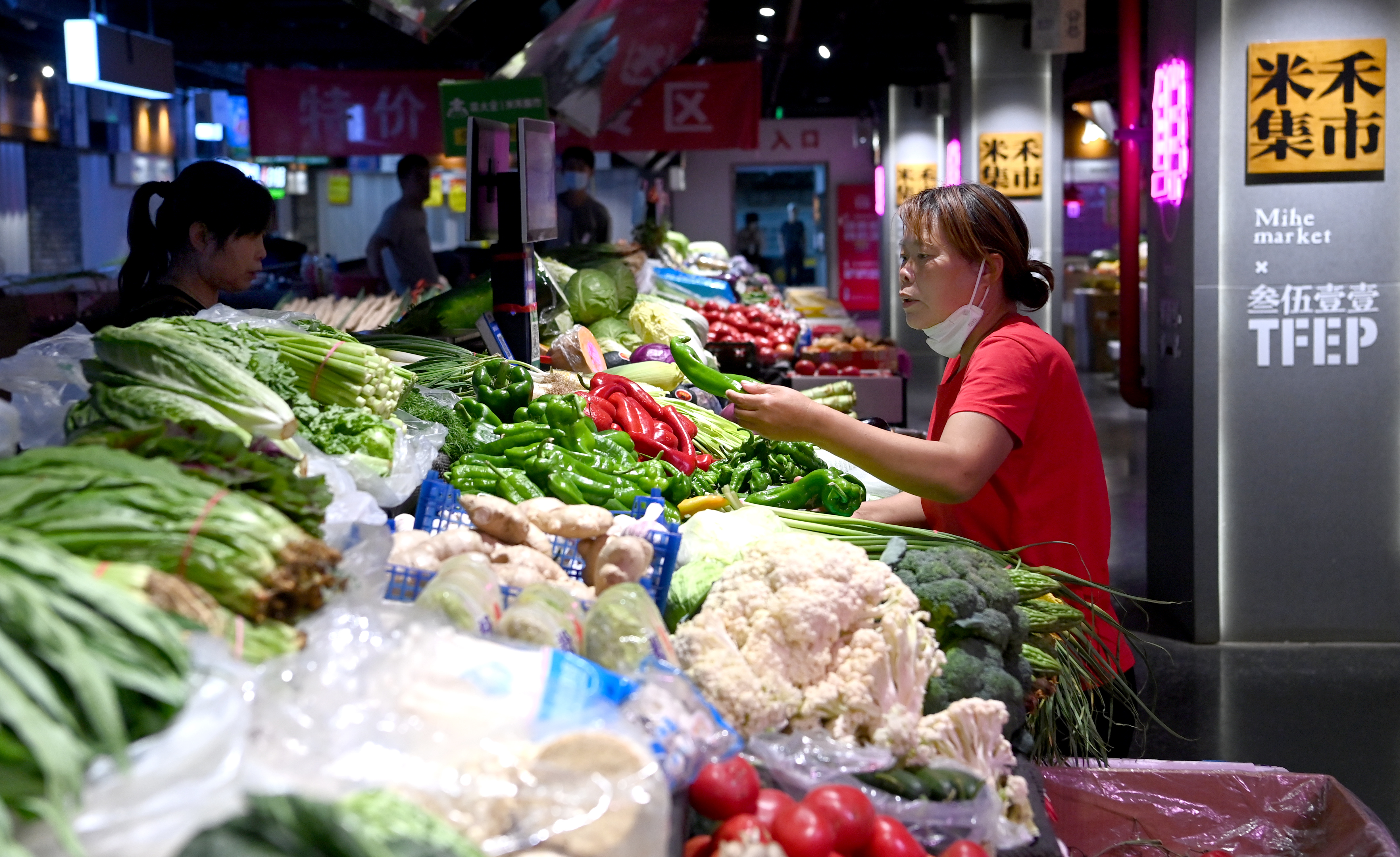 市民在西安際華3511文創(chuàng)科技園內(nèi)的集市購(gòu)物(5月20日攝)。 新華社記者 劉瀟 攝