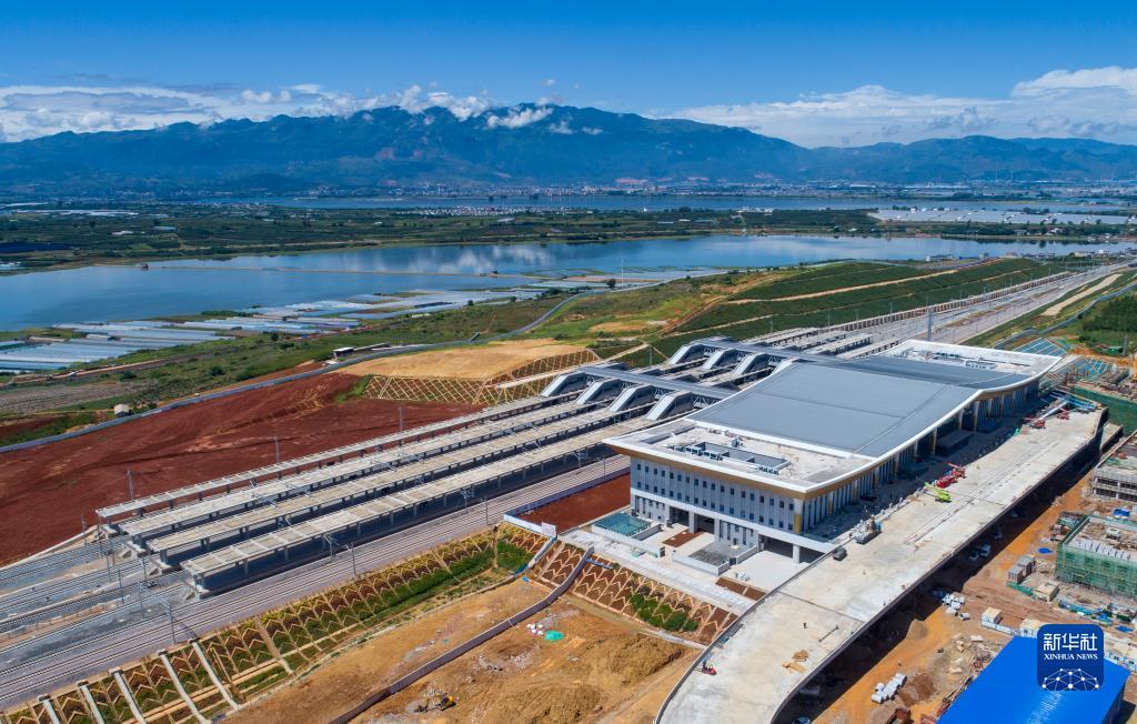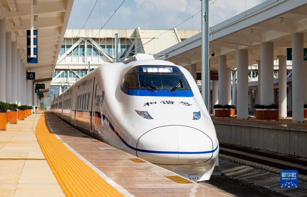 8月23日,綜合檢測(cè)車駛出彌蒙高鐵彌勒站。新華社發(fā)(周濤 攝)