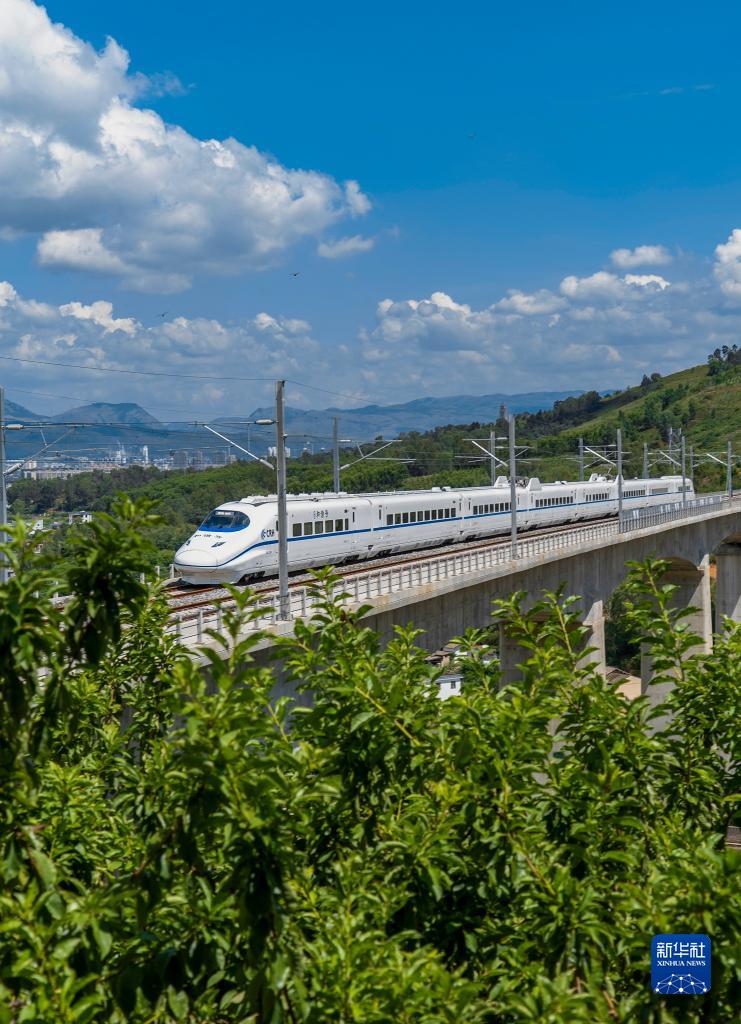 8月23日,綜合檢測(cè)車通過彌蒙高鐵南洞3號(hào)特大橋。新華社發(fā)(吳宇 攝)