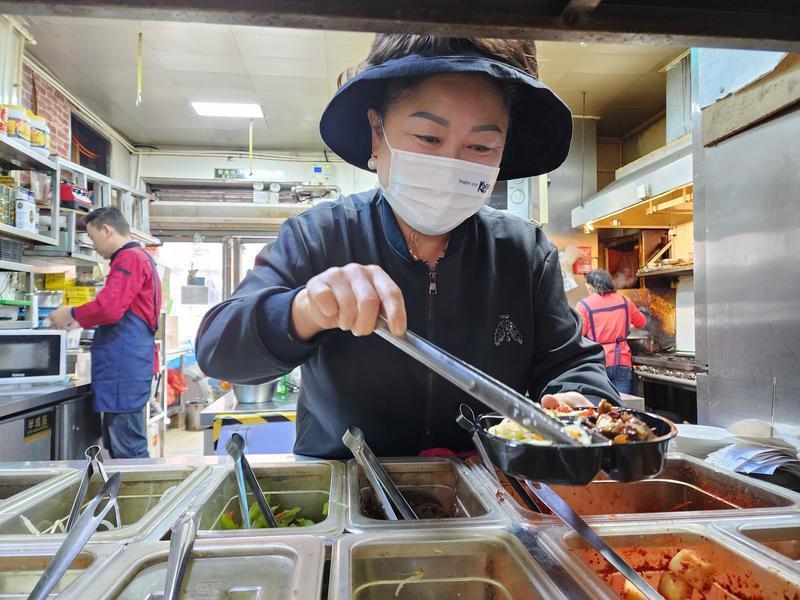 盡管9月23日參加韓國(guó)駐西安總領(lǐng)事館舉辦的韓國(guó)國(guó)慶日招待會(huì)很晚才回去,第二天一大早,文美卿仍如往常一樣來到自己在西安綠地中央廣場(chǎng)韓國(guó)風(fēng)情街經(jīng)營(yíng)的明東碳烤韓國(guó)料理店。“最近我們剛開展外賣業(yè)務(wù),我來幫著做一些餐食包裝和準(zhǔn)備工作。”文美卿說。