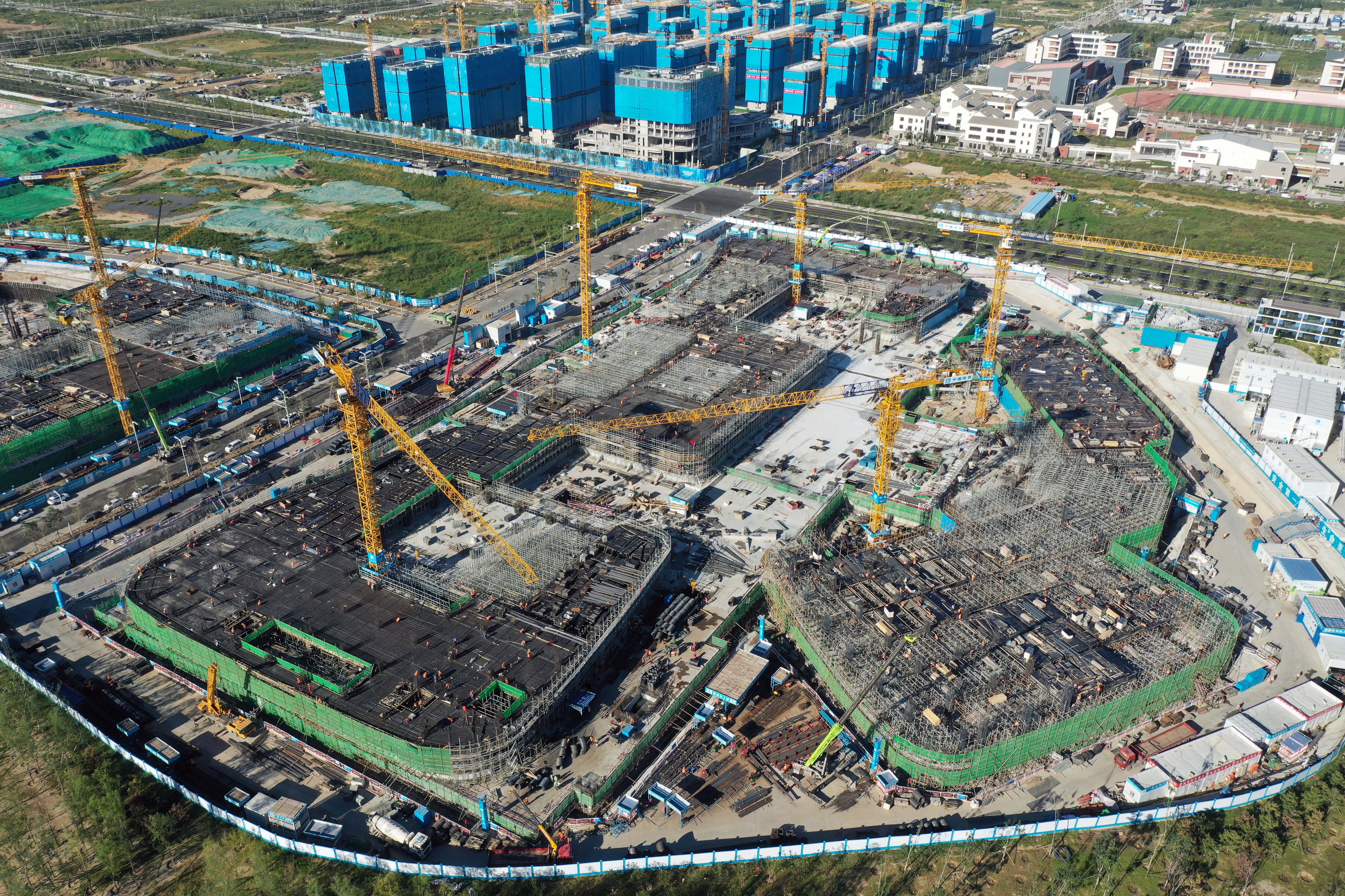 位于雄安新區(qū)啟動區(qū)的中國星網(wǎng)雄安新區(qū)總部大樓建設(shè)施工現(xiàn)場(2022年9月7日攝,無人機照片)。新華社記者 朱旭東 攝