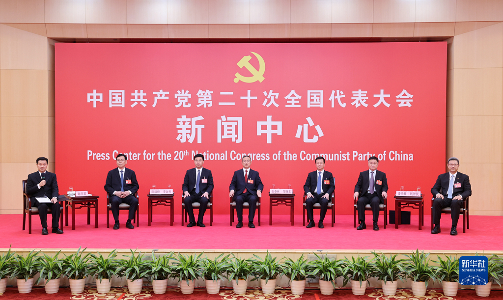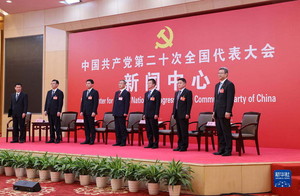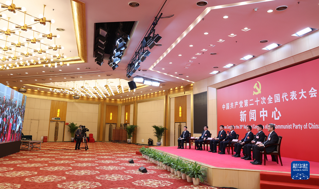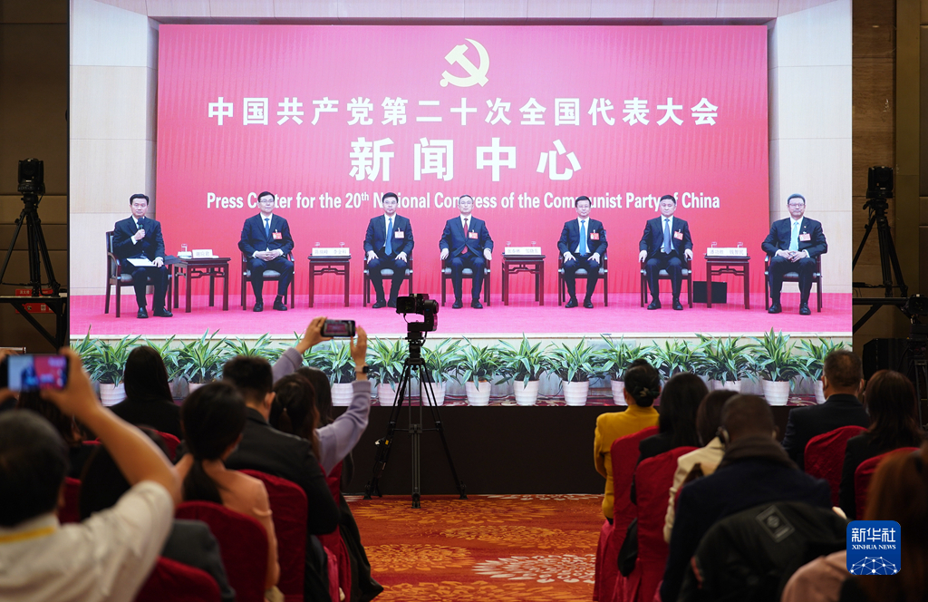 10月20日,中國共產黨第二十次全國代表大會新聞中心舉行集體采訪。青海、寧夏、新疆、中央和國家機關、中央金融系統(tǒng)、中央企業(yè)系統(tǒng)(在京)代表團新聞發(fā)言人出席,介紹代表團學習討論二十大報告情況,并回答記者提問。新華社記者 陳建力 攝