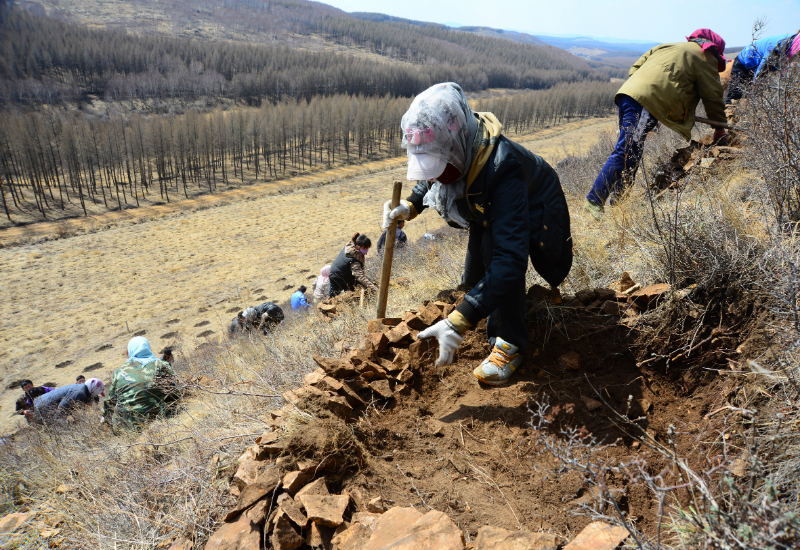 塞罕壩石質(zhì)山地造林(塞罕壩機(jī)械林場供圖)