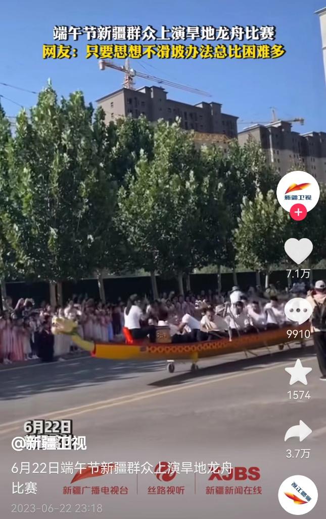 黃土高原的干旱土地里,“撐著走”的各類旱地龍舟賽,與江南水鄉(xiāng)一樣,充滿了氣勢與歡樂,網(wǎng)友妙評說:“這些快樂里沒有一點(diǎn)水分!”