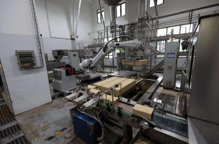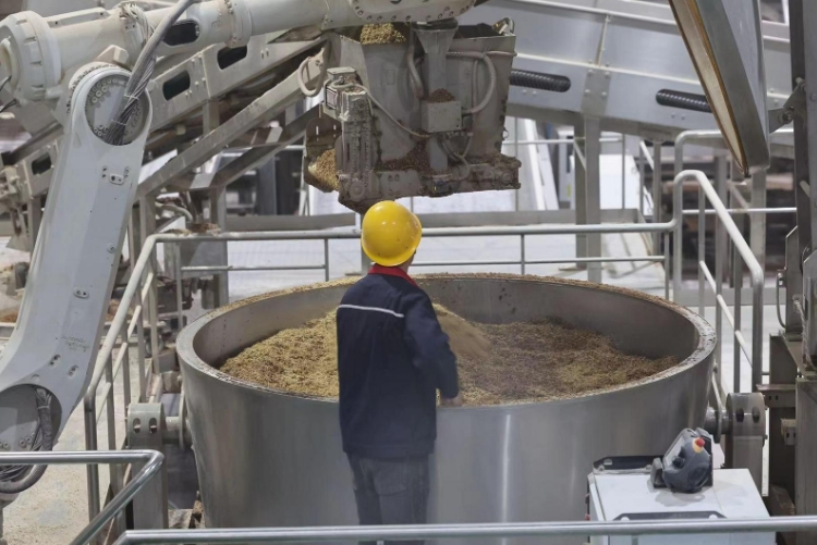 如今的西鳳酒釀造場景早已不是當(dāng)初模樣。在全國首個全智能化釀酒車間——906車間,空氣中彌漫著濃濃的酒糟味,但這里看不到很多工人,偌大的廠房內(nèi),取而代之的是機(jī)械手臂、輸送機(jī)、摘酒設(shè)備、智能行車系統(tǒng),有條不紊地工作著。在保留西鳳酒古法釀造精華的同時(shí),工業(yè)機(jī)器人完成著自動化起入窖、自動化物料轉(zhuǎn)運(yùn)、精準(zhǔn)配糟、均勻拌和、機(jī)器人上甑、蒸餾精準(zhǔn)控制等工序。