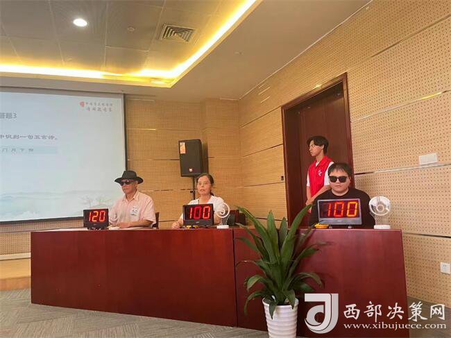 今年7月至9月,陜西省圖書館主辦了“感受文化脈搏,共賞詩詞之美”全國視障讀者古詩詞邀請賽陜西省分賽,經(jīng)過層層選拔,推選出伍育嶺、謝西彥兩名優(yōu)勝選手參加全國總決賽。在決賽現(xiàn)場,選手們展現(xiàn)出了超凡的知識儲(chǔ)備水平,通過必答、搶答及飛花令等多輪環(huán)節(jié),為觀眾們帶來了一場精彩的聽覺與視覺上的盛宴。