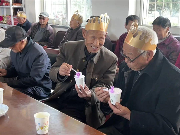 老人們圍坐在一起聊家常、話發(fā)展,志愿者們一起為老壽星戴生日帽、切蛋糕、盛長壽面。“這蛋糕甜得很,你快嘗嘗。等會兒咱還能去免費(fèi)看病、理頭發(fā)、吃臊子面咧。”村里的王大爺高興地向一旁的劉大爺分享這份喜悅。一句句生日快樂,道出對老人的關(guān)愛與祝福,老人們一邊品嘗著蛋糕,一邊嘮著家常,活動現(xiàn)場熱鬧而溫馨。