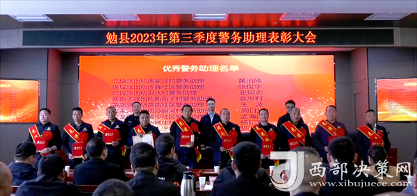 西部決策網(wǎng)訊 10月27日上午,勉縣公安局隆重舉辦“一村一警務(wù)助理”總結(jié)表彰大會。會議由縣委政法委副書記黃建成主持,副縣長、公安局黨委書記、局長陳玉存出席會議并講話。公安局黨委委員、副局長向建文,各鎮(zhèn)(辦)分管領(lǐng)導(dǎo),公安局治安大隊、各派出所領(lǐng)導(dǎo),警務(wù)助理代表和先進個人等120余人參會。