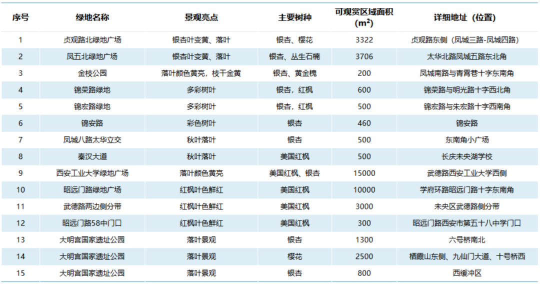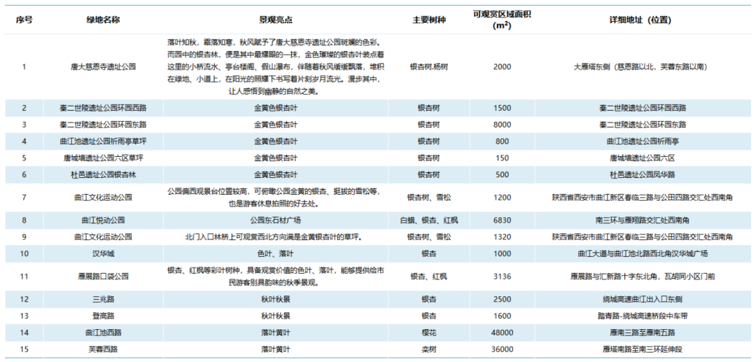 附西安“落葉緩掃、留住秋景”點位: