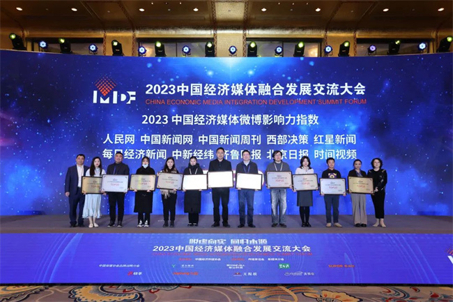 人民網、中國新聞網、中國新聞周刊、西部決策、紅星新聞、每日經濟新聞、中新經緯、齊魯晚報、北京日報、時間視頻10家媒體進入“2023 中國經濟媒體微博影響力指數TOP10”榜單。